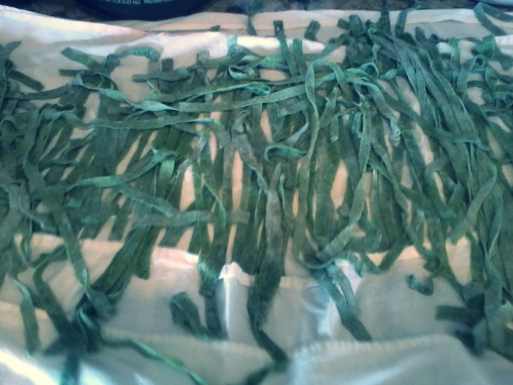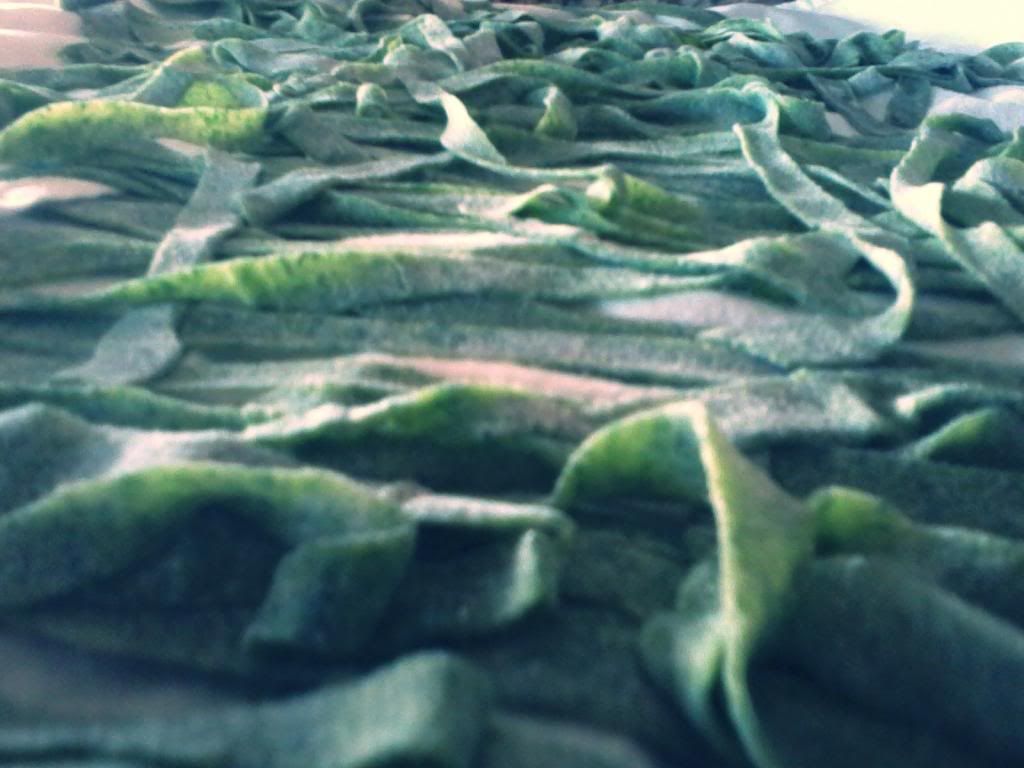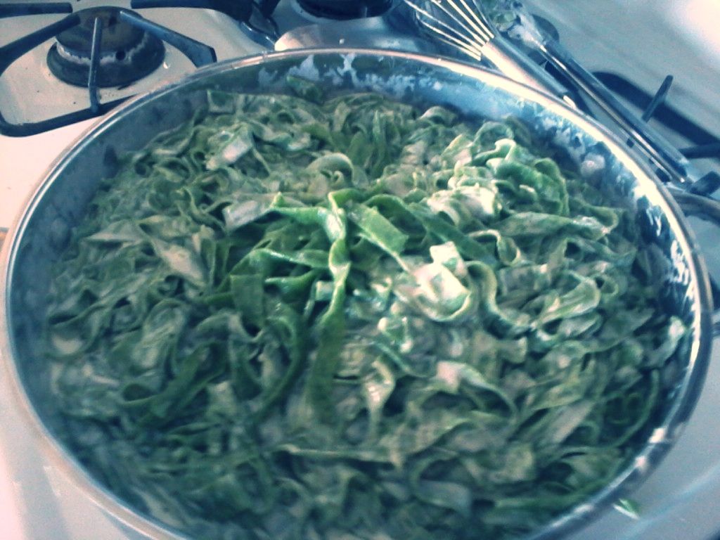 Homemade spinach, basil fettuccine in alfredo sauce (recipe here) we also added in chicken, carrots, and mushrooms after this picture was taken.