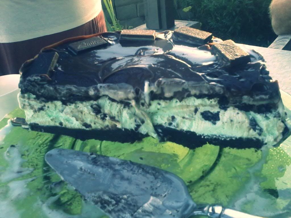 And to finish off a perfect dinner, my mom made a delicious mint chip ice cream brownie cake with Andes mints and fudge.